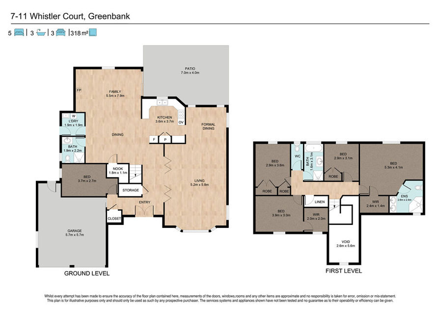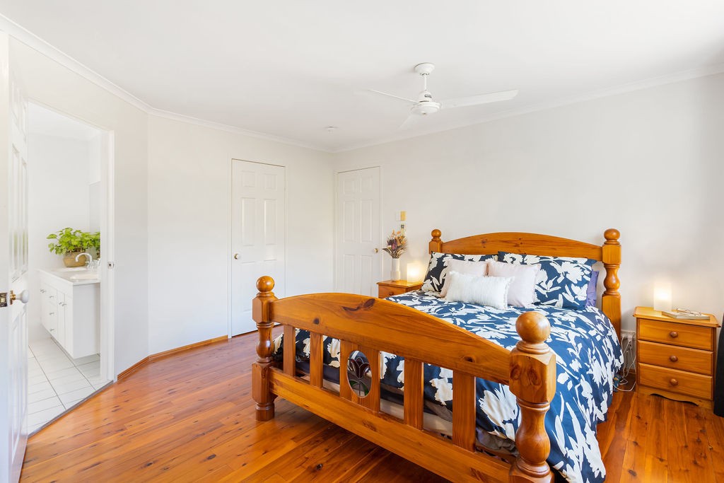 - Spacious parents retreat with air con, ceiling fan and walk in wardrobe. This room also has an en-suite with double vanity, toilet, shower over corner spa bath.