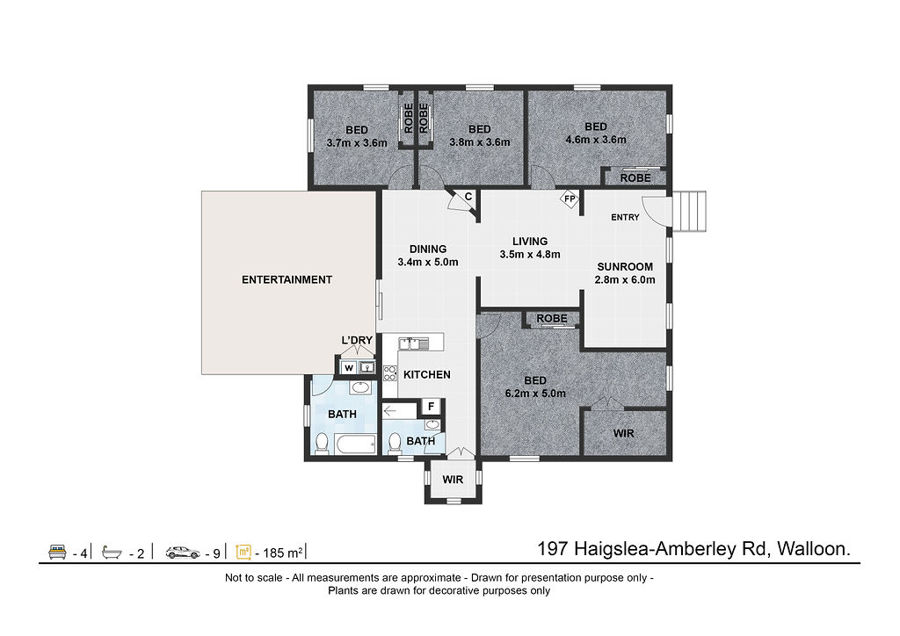 - Spacious Living throughout: This generous 4-bedroom, 2-bathroom home boasts polished timber floors throughout, creating an inviting and warm atmosphere. The main bedroom and lounge room have air con while all bedrooms have fans.